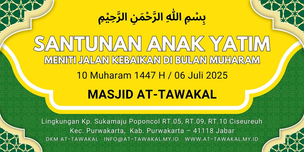 Pada Hari Minggu, tanggal 10 Muharam 1447 H / 06 Juli 2025, dimulai pada pukul 07.00 wib. s/d selesai. bertempat di Masjid AT-TAWAKAL Kp. Sukamaju Poponcol Ciseureuh Kecamatan Purwakarta Kabupaten Purwakarta. Telah dilaksanakan Kegiatan Pemberian Bantuan Kepada anak Yatim Piatu. Adapun yang hadir dalam giat tersebut, sbb :
